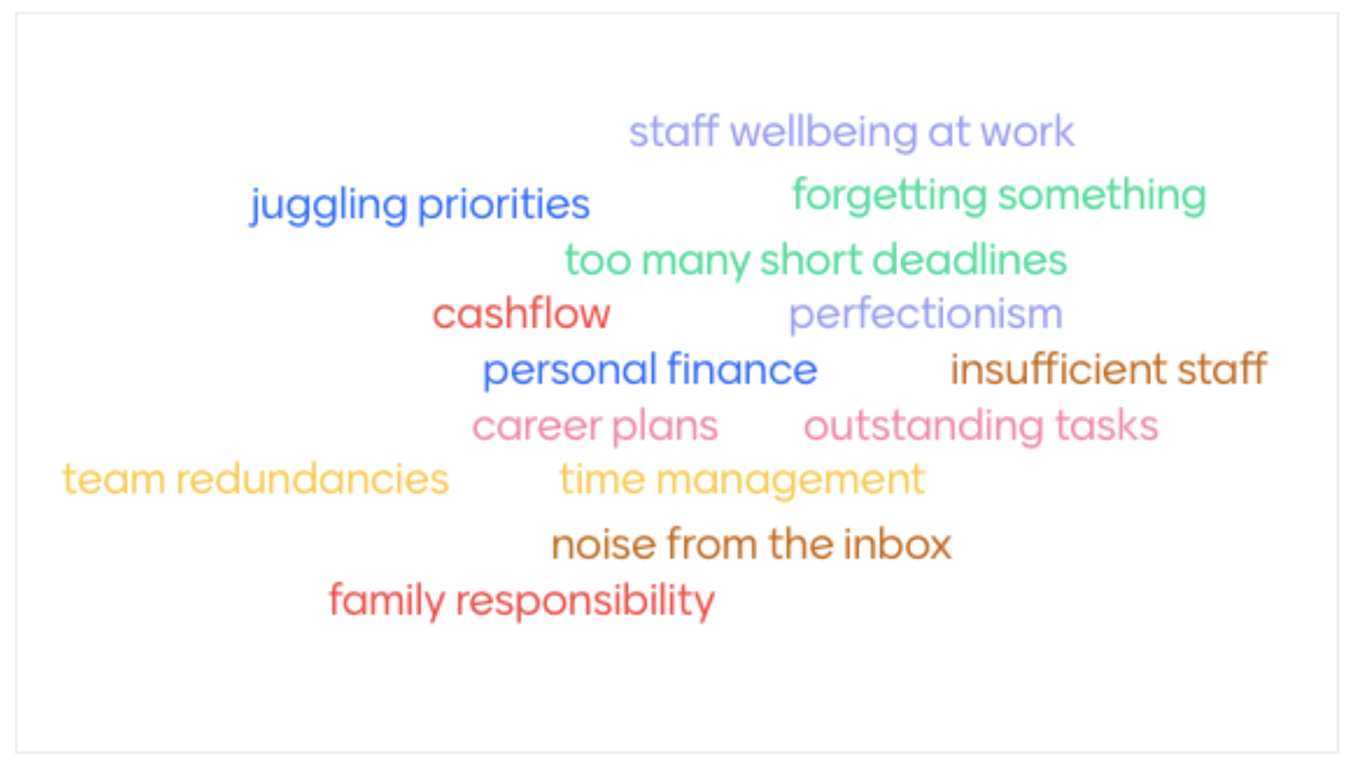 We asked our community members a few weeks ago in an IC Café “In a few words, what is the key pressure that keeps you awake at night?” and they responded with a range of concerns including juggling priorities, insufficient staff, team redundancies, perfectionism, and family responsibility (see image1).